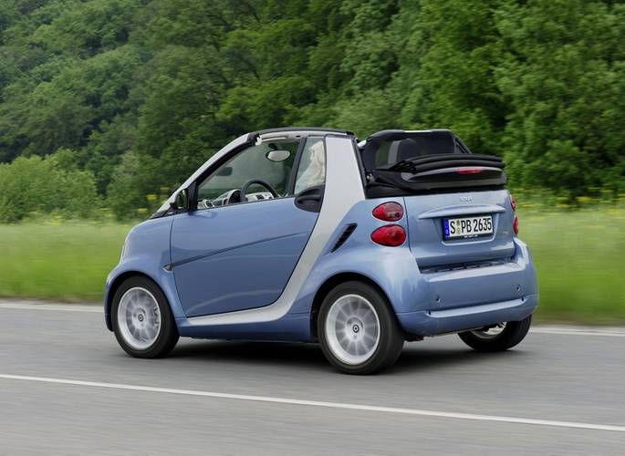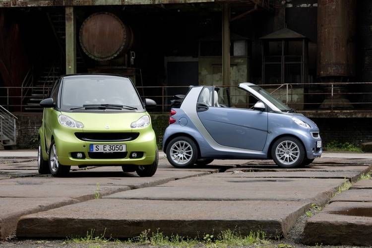 #Smart Fortwo je malým vozem produkovaným od roku 2010, který se vyrábí ve Francii. Dostupné jsou varianty karosérie třídveřový hatchback a kabriolet. Nabídka motorizací zahrnuje zážehové i vznětové pohonné jednotky, nejvýkonnější verze 1.0 Brabus má výkon 75 kW a dosahuje maximální rychlosti 155 km/h. Nejúspornější model 0.8 CDI má spotřebu paliva 3.3 l/100 km a emise CO2 86 g/km. Objem zavazadlového prostoru je 220 l pro oba typy karoserie. V oblasti bezpečnosti EURONCAP získal Smart Fortwo hodnocení 4 z 5 hvězdiček.