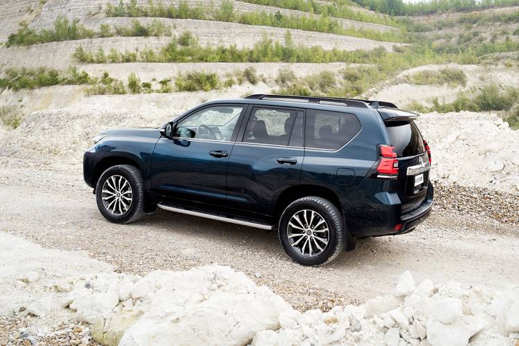La Toyota Land Cruiser SUV est produite depuis 2017 et est disponible en version moteur diesel. La plus haute performance est atteinte par le modèle 2.8 D-4D, qui peut atteindre une vitesse allant jusqu'à 175 km/h avec une consommation de carburant de 7,4 l/100 km et des émissions de 190 g/km. Le compartiment à bagages offre un volume de 381 l. Ce modèle est produit au Japon et en Chine.