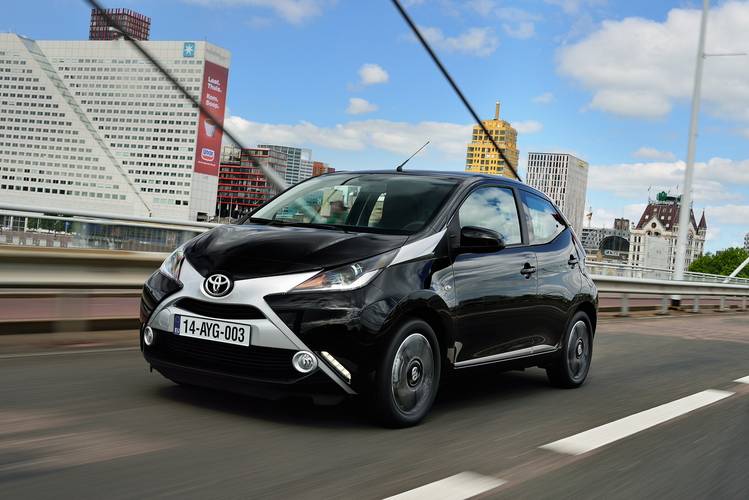 A Toyota Aygo tem sido produzida desde 2014 como hatchback de três portas e hatchback de cinco portas. O veículo é fabricado na República Checa e oferece uma gama de motores a gasolina, sendo o mais poderoso o 1.0 VVT-i com 51 kW, que alcança uma velocidade máxima de 160 km/h. A versão mais econômica do 1.0 VVT-i tem um consumo de combustível combinado de 4,1 l/100 km e emissões de CO2 de 95 g/km. O volume do compartimento de bagagem para o modelo hatchback de três portas é de 168 l, o mesmo para o hatchback de cinco portas. O teste de segurança EURONCAP em 2017 deu à Toyota Aygo uma classificação de 4 de 5.